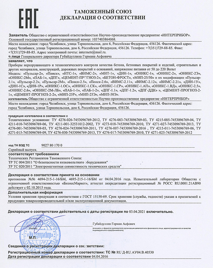 ОНИКС-2.6ВБ (для высокомарочных бетонов) предназначен для оперативного контроля прочности бетона, однородности и определения его класса (по ГОСТ 22690, в т.ч. тяжёлого и высокомарочного) при технологических испытаниях и обследовании объектов строительства, а также для контроля кирпича и др. строительных материалов